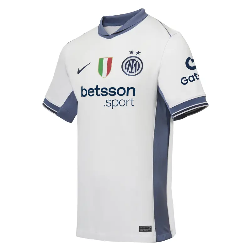 Zum ersten Mal auf unserem Trikot leuchtet der zweite Stern über dem Logo des neuen Auswärtstrikots 2024/25. Die Stadion-Kollektion bildet die Details des Originaldesigns mit atmungsaktiver Technologie für einen Match-Look nach, der vom Aussehen der Profis auf dem Spielfeld inspiriert ist. Die Nike Dri-FIT-Technologie leitet Schweiß ab, um eine schnelle Verdunstung zu fördern und die Haut trocken zu halten – für einen hervorragenden Tragekomfort. Das Trikot ist aus recyceltem Polyester hergestellt. Das neue Auswärtstrikot wird durch passende Shorts und Stutzen ergänzt. Du kannst das Trikot mit dem Namen und der Nummer deines Lieblingsspielers personalisieren und die Aufnäher der Lega Serie A 2024/25 oder der Champions League auf dem Ärmel hinzufügen.