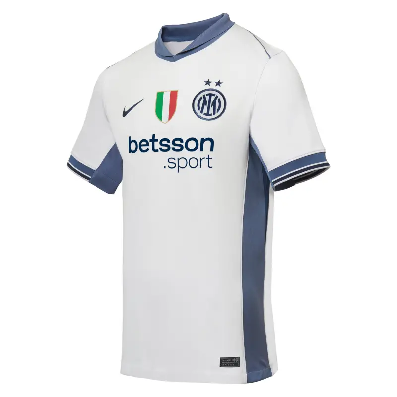 Zum ersten Mal auf unserem Trikot leuchtet der zweite Stern über dem Logo des neuen Auswärtstrikots 2024/25. Die Stadion-Kollektion bildet die Details des Originaldesigns mit atmungsaktiver Technologie für einen Match-Look nach, der vom Aussehen der Profis auf dem Spielfeld inspiriert ist. Die Nike Dri-FIT-Technologie leitet Schweiß ab, um eine schnelle Verdunstung zu fördern und die Haut trocken zu halten – für einen hervorragenden Tragekomfort. Das Trikot ist aus recyceltem Polyester hergestellt. Das neue Auswärtstrikot wird durch passende Shorts und Stutzen ergänzt. Du kannst das Trikot mit dem Namen und der Nummer deines Lieblingsspielers personalisieren und die Aufnäher der Lega Serie A 2024/25 oder der Champions League auf dem Ärmel hinzufügen.