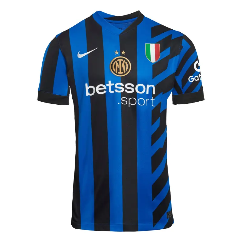 Zum ersten Mal leuchtet auf unserem Trikot der zweite Stern über dem Logo des neuen Heimtrikots 2024/25. Die Stadion-Kollektion bildet die Details des Originaldesigns mit atmungsaktiver Technologie für einen Match-Look nach, der vom Aussehen der Profis auf dem Spielfeld inspiriert ist. Die Nike Dri-FIT-Technologie leitet Schweiß ab, um eine schnelle Verdunstung zu fördern und die Haut trocken zu halten – für einen hervorragenden Tragekomfort. Das Trikot ist aus recyceltem Polyester hergestellt. Das neue Heimtrikot wird durch passende Shorts und Stutzen ergänzt. Du kannst das Trikot mit dem Namen und der Nummer deines Lieblingsspielers personalisieren und die Aufnäher der Lega Serie A 2024/25 oder der Champions League auf dem Ärmel hinzufügen