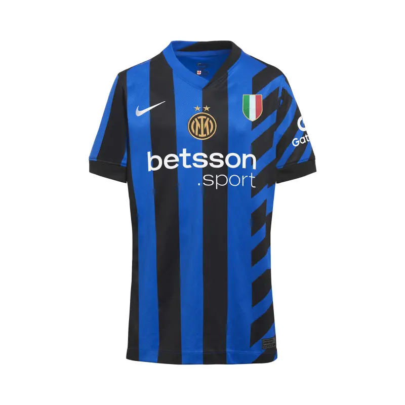 Zum ersten Mal leuchtet auf unserem Trikot der zweite Stern über dem Logo des neuen Heimtrikots 2024/25. Die Stadion-Kollektion kopiert die Details des Originaldesigns mit atmungsaktiver Technologie für einen Match-Look, der vom Aussehen der Profis auf dem Spielfeld inspiriert ist. Die Nike Dri-FIT-Technologie leitet Schweiß ab, um eine schnelle Verdunstung zu fördern und die Haut trocken zu halten – für einen hervorragenden Tragekomfort. Das Trikot ist aus recyceltem Polyester hergestellt. Das neue Heimtrikot wird durch passende Shorts und Stutzen ergänzt. Du kannst das Trikot mit dem Namen und der Nummer deines Lieblingsspielers personalisieren und die Aufnäher der Lega Serie A 2024/25 oder der Champions League auf dem Ärmel hinzufügen.