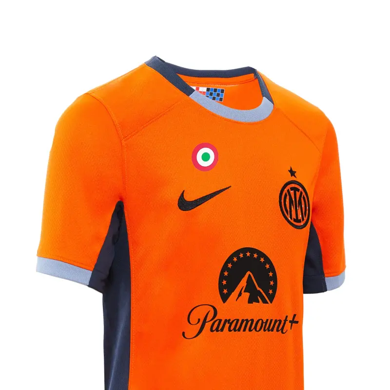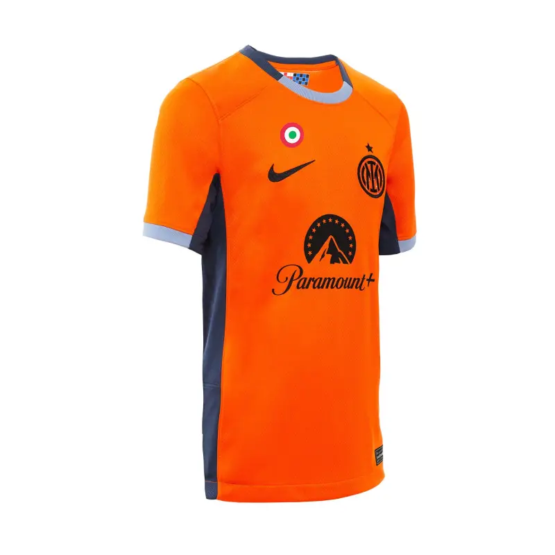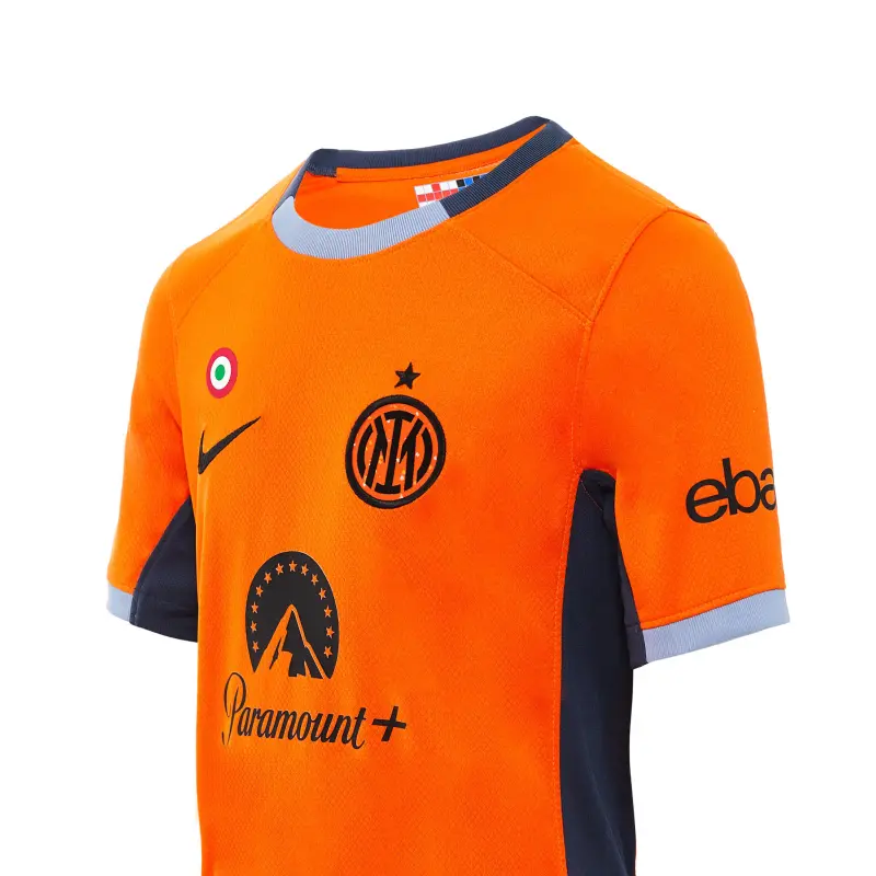 Das neue INTER 2023/24 Trikot in Orange mit grauem Kragen ist inspiriert von dem Trikot aus der Saison 2000/2001, das von Champions wie Ronaldo, Zanetti und Vieri getragen wurde. Das neue Dritte Trikot von INTER 2023/24 wurde aus 100% recyceltem Polyester hergestellt, das aus der Wiederverwertung von Plastikflaschen gewonnen wird, und mit einem neuen Muster versehen, das dazu beiträgt, den Materialabfall und die Umweltbelastung zu reduzieren, und wurde unter dem Gesichtspunkt der Nachhaltigkeit entwickelt. Die Stadium-Kollektion greift die Details des Originaldesigns auf und kombiniert sie mit atmungsaktiver Technologie für einen Match-Look, der sich an dem orientiert, den die Profis auf dem Platz tragen. Die Nike Dri-FIT-Technologie leitet Schweiß ab, um eine schnelle Verdunstung zu fördern und die Haut trocken zu halten – für idealen Tragekomfort.