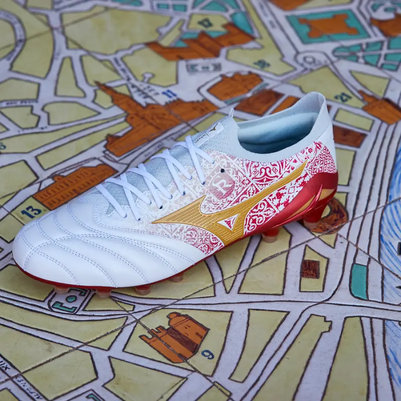 Der Morelia Neo IV Beta ist für ultimativen Komfort und Leistung entwickelt worden. In Anlehnung an die japanische Kaizen-Philosophie der kontinuierlichen Verbesserung wurde diese vierte Generation des Morelia Neo sorgfältig verfeinert, um ein Gefühl der zweiten Haut zu bieten, indem modernste Materialien aus dem letzten Jahrzehnt mit hochwertigem K-Leder kombiniert wurden. Zu den wichtigsten Merkmalen gehören eine um 5 mm erhöhte Zunge für einen sicheren Sitz um den Knöchel, eine reichhaltigere Einlegesohle für zusätzlichen Halt und ein verstärkter Y-förmiger Mittelfußschaft, der entwickelt wurde, um intensivem Druck bei explosiven Bewegungen standzuhalten. Der Morelia Neo IV Beta ist für alle Oberflächen geeignet und wurde mit dem Ziel entwickelt, das Spiel eines jeden Spielers zu verbessern. Die Kollektion „Home and Glory“ ist eine Hommage an Sevilla, die Stadt, in der die legendäre Karriere von Sergio Ramos begann. Mit einer reichen Farbpalette aus kastanienbraun, cremefarben, kupferfarben und schwarz spiegelt die Kollektion nicht nur die Farben der Fußballmannschaft der Stadt wider, die ihn von einem vielversprechenden Jungen zu einem Spitzenverteidiger machte, sondern enthält auch traditionelle spanische Fliesenmuster, die für Sevilla emblematisch sind. Diese Designwahl spiegelt Sergio Ramos‘ tiefe Verbundenheit mit seinen Wurzeln wider und zelebriert die komplizierte Kunstfertigkeit spanischer Fliesen – eine Kunstform, die wie seine Fußballkarriere Zeit, Hingabe und Leidenschaft erfordert. ・Hergestellt in Japan ・KLeather ・BareFoot KNIT NEO (aktualisiert mit einem Strickmuster, das im Bereich der Schuhöffnung ein noch besseres Barfußgefühl vermitteln soll) ・BareFoot MESH NEO (Verwendung eines weicheren Materials für den oberen Mittelfuß)