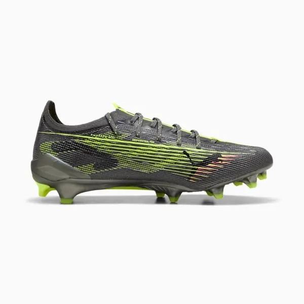 Wie schnell ist der ULTRA 5 ULTIMATE? Schnall dich an und entfessele deine Geschwindigkeit mit PUMAs ultimativem Fußballschuh, speziell für sie entwickelt. Mit SPEEDSYSTEM-Außensohle, FastTrax-Stollen und GripControl Pro-Obermaterial für unübertroffene Traktion und Kontrolle. Die Ortholite®-Fersendämpfung sorgt für sicheren und kraftvollen Halt bei jedem Schritt. Spiele schneller, fühle dich unaufhaltsam.
